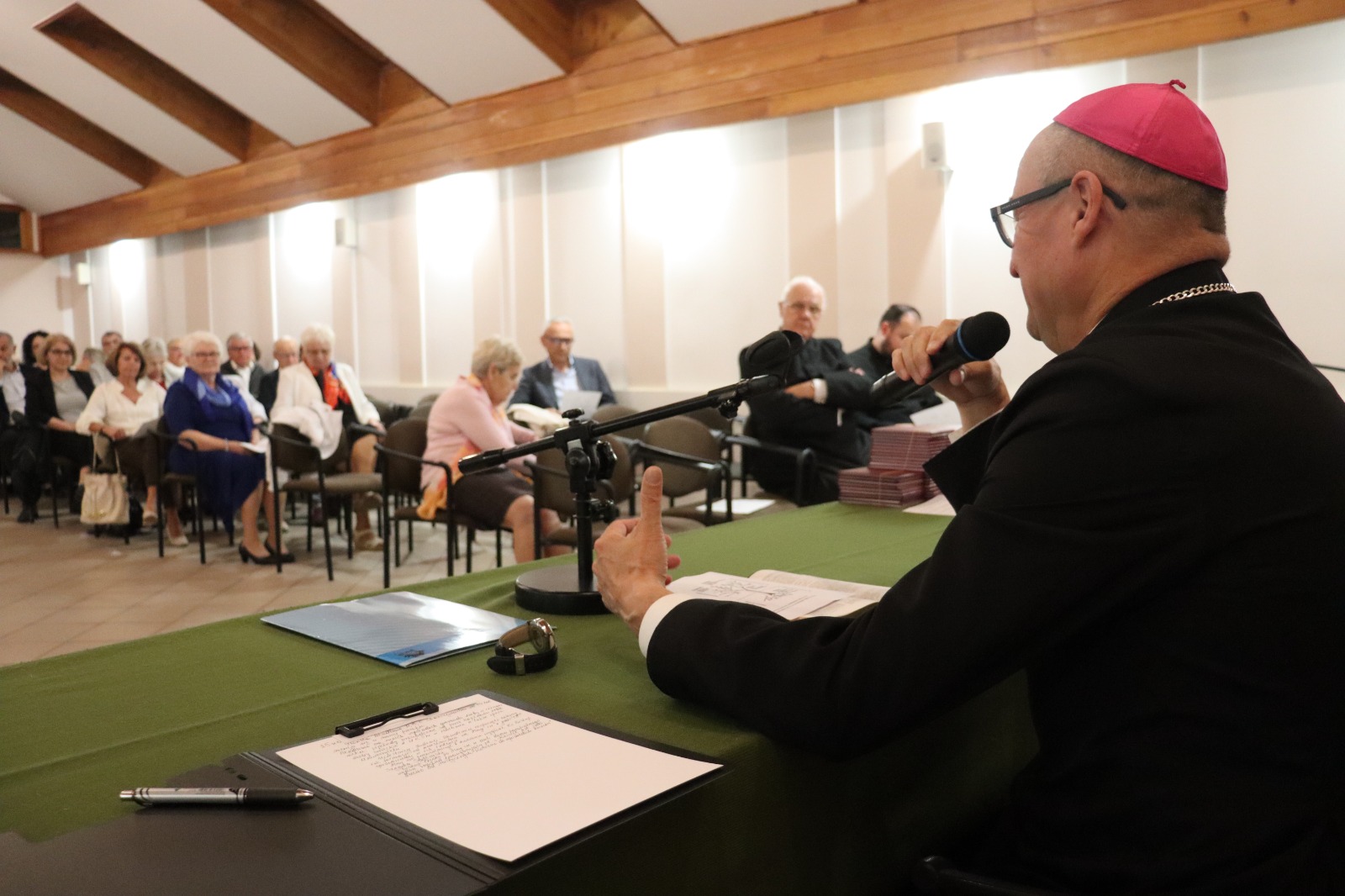 Po mszy św. którą uświetnił działający przy tutejszej parafii zespół muzyczny Effatha uczestnicy uroczystości przeszli do auli gdzie odbyła się pierwsza w tym roku sesja, którą otworzył wykład ks. bpa Szymona Sułkowskiego „Kościół jest jak drzewo. Od mistycznych korzeni do apostolskich owoców.” Po wykładzie kierownik Uniwersytetu Otwartego UKSW dr Kazimierz Szałata wręczył dyplomy za rok akademicki 2024/25. Nowi słuchacze otrzymali indeksy oraz złożyli uroczyste ślubowanie studenta UKSW.