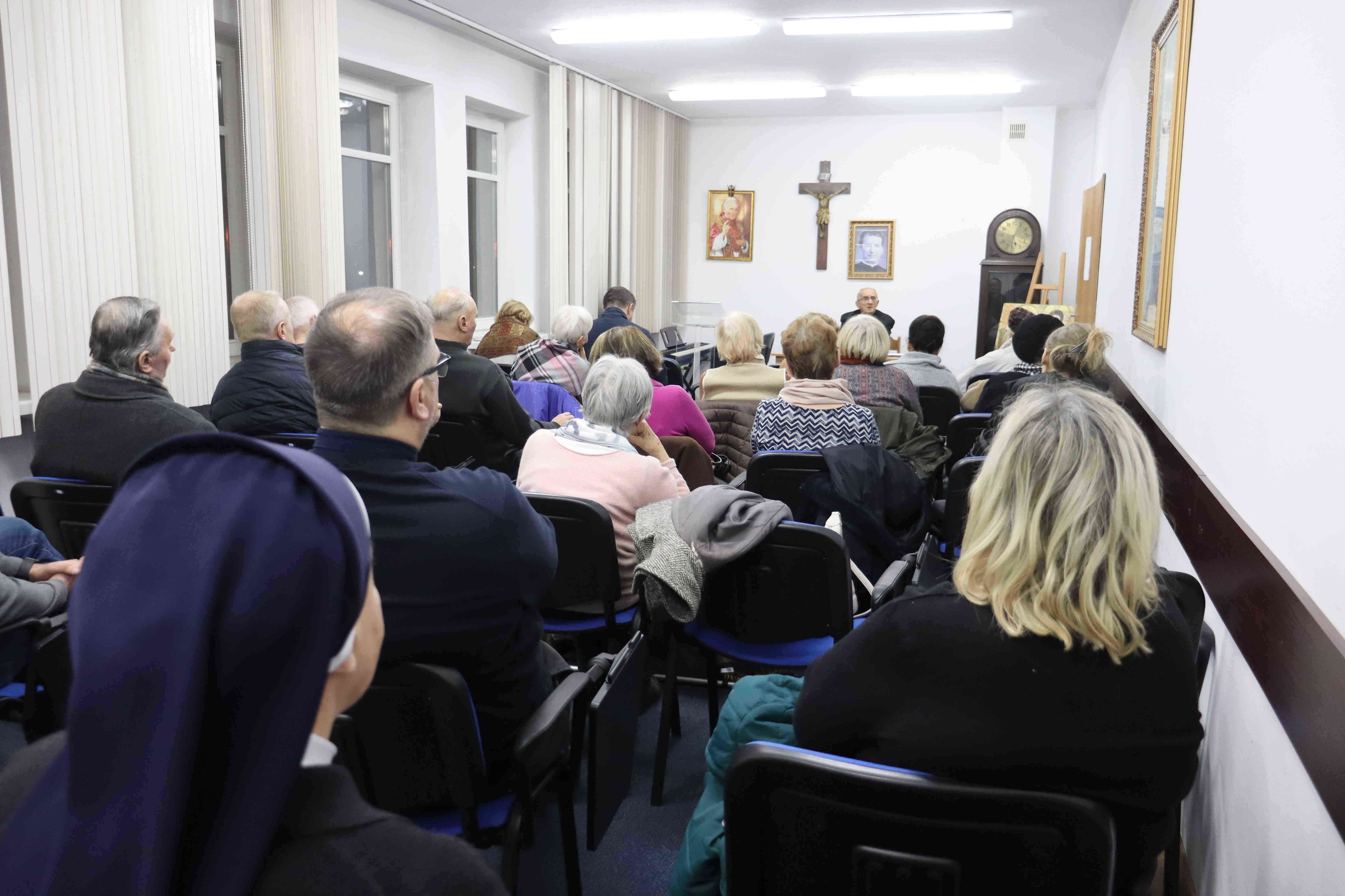 W ostatni czwartek stycznia 2026 w Praskiej Szkole Nauki Kościoła przy Bazylice Najświętszego Serca Pana Jezusa ks. prof. Stanisław Urbański wygłosił wykład „Prawdziwe życie duchowe a religijność”. Spotkanie w sali parafialnej przy ul. Kawęczyńskiej na warszawskiej Pradze poprowadził kierownik Uniwersytetu Otwartego UKSW dr Kazimierz Szałata w towarzystwie gospodarza miejsca ks. proboszcza Adama Wtulicha SDB. Podczas dyskusji ks. profesor przytoczył liczne przykłady mistyków, którzy swoim życiem pokazywali pobożność, jako drogę rozwoju życia duchowego.